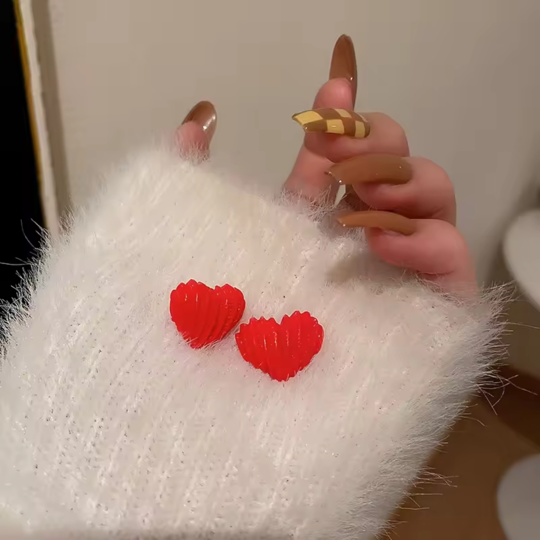 Add a vibrant pop of color to your look with our Red Heart Stud Earrings—a perfect blend of playful charm and bold style. These eye-catching studs feature a rich, glossy red heart design that radiates warmth and passion, making them an ideal accessory for everyday wear or special occasions. Lightweight and comfortable, they sit perfectly on the earlobe, adding a sweet yet striking detail to any outfit. Whether paired with casual jeans or a chic dress, these earrings bring a touch of fun and romance to your jewelry collection. Embrace your bold side with these timeless, heartwarming studs.