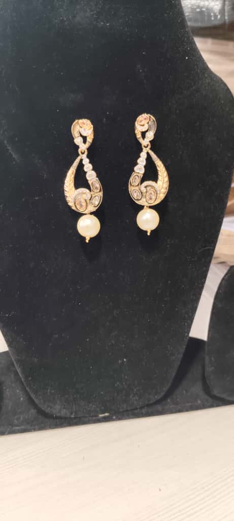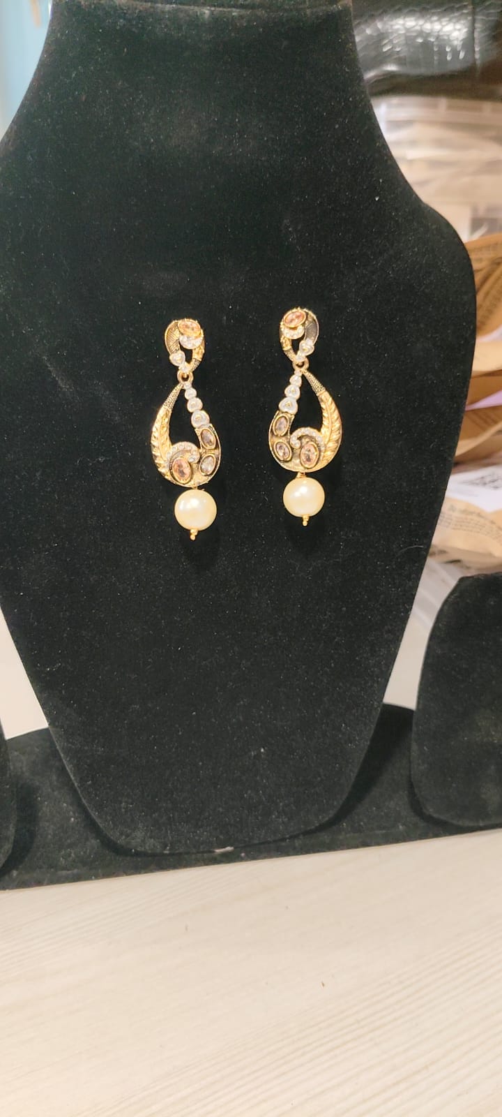 This is a pair of elegant gold-toned and pearl drop earrings, designed to add a touch of sophistication to any look. Featuring a lustrous gold finish, these earrings showcase delicate pearl drops that bring timeless charm and subtle grace. The refined design makes them versatile—perfect for both traditional and contemporary outfits. Lightweight and comfortable, they’re ideal for weddings, festive occasions, or even everyday elegance. The combination of radiant gold tones and classic pearls creates a harmonious blend of modern style and traditional beauty. These earrings are a must-have accessory for anyone who appreciates understated luxury and timeless appeal.