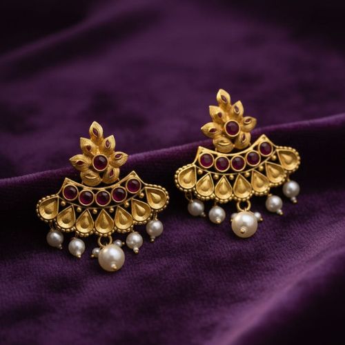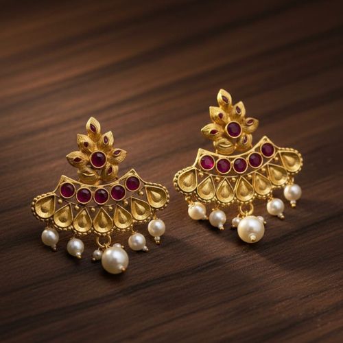 This exquisite pair of traditional Indian earrings, often referred to as Jhumkas or Chandbalis, beautifully blends two iconic styles into one elegant design. Featuring the graceful crescent shape of chandbalis and the timeless bell-shaped drop of jhumkas, these earrings are a celebration of heritage and craftsmanship. Adorned with intricate detailing, sparkling stones, and delicate embellishments, they exude regal charm and cultural richness. Perfect for weddings, festivals, or special occasions, they complement both classic and contemporary ethnic wear. Lightweight yet striking, this pair offers a perfect balance of tradition and sophistication, making it a must-have addition to any jewellery collection.
