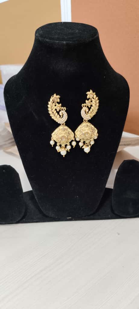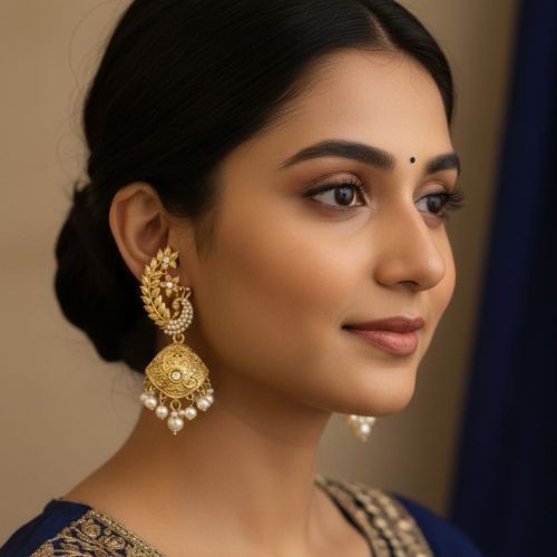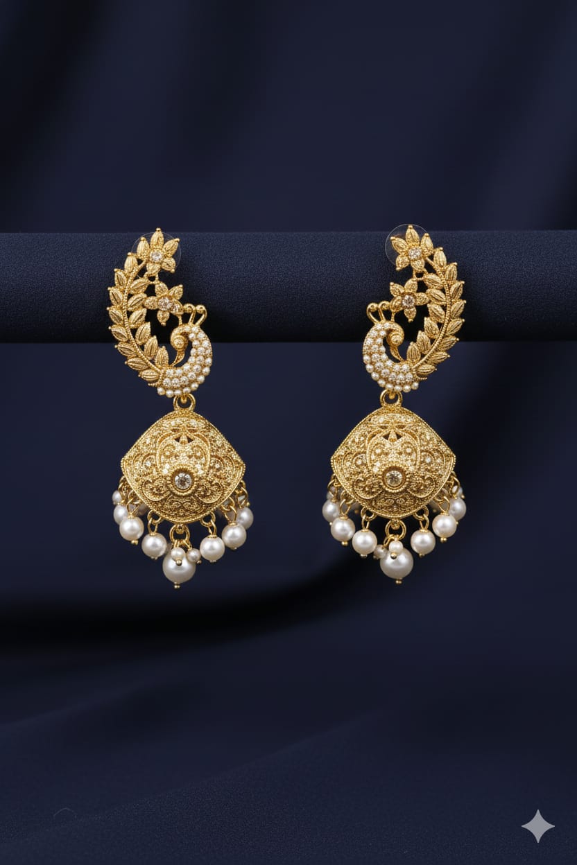 Traditional Indian Jhumka earrings are a timeless symbol of elegance and cultural heritage. Characterized by their iconic bell-shaped design, Jhumkas are intricately crafted and often embellished with fine details such as filigree work, pearls, beads, or gemstones. These earrings are designed to sway gracefully with movement, adding charm and femininity to any look. Worn with sarees, lehengas, or salwar suits, they are a staple accessory for weddings, festivals, and traditional celebrations. Available in gold, silver, and oxidized finishes, Jhumkas blend classic artistry with enduring style, making them a beloved piece in every Indian jewelry collection.