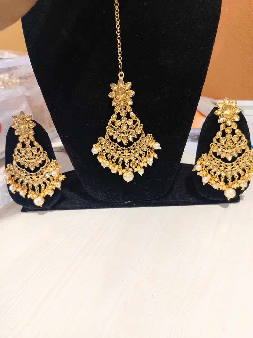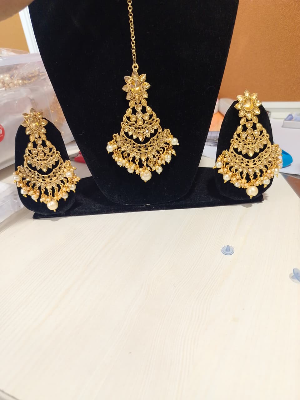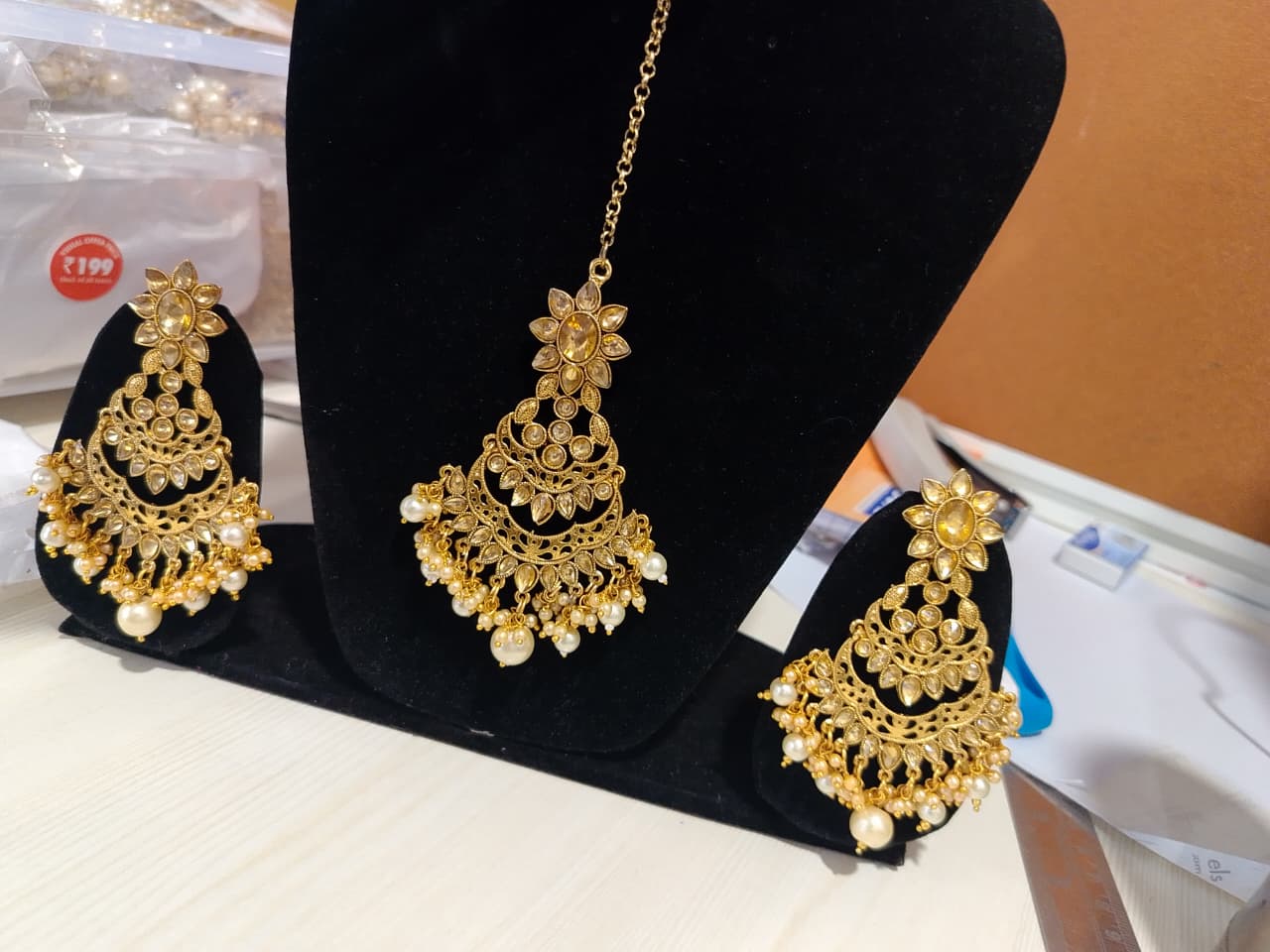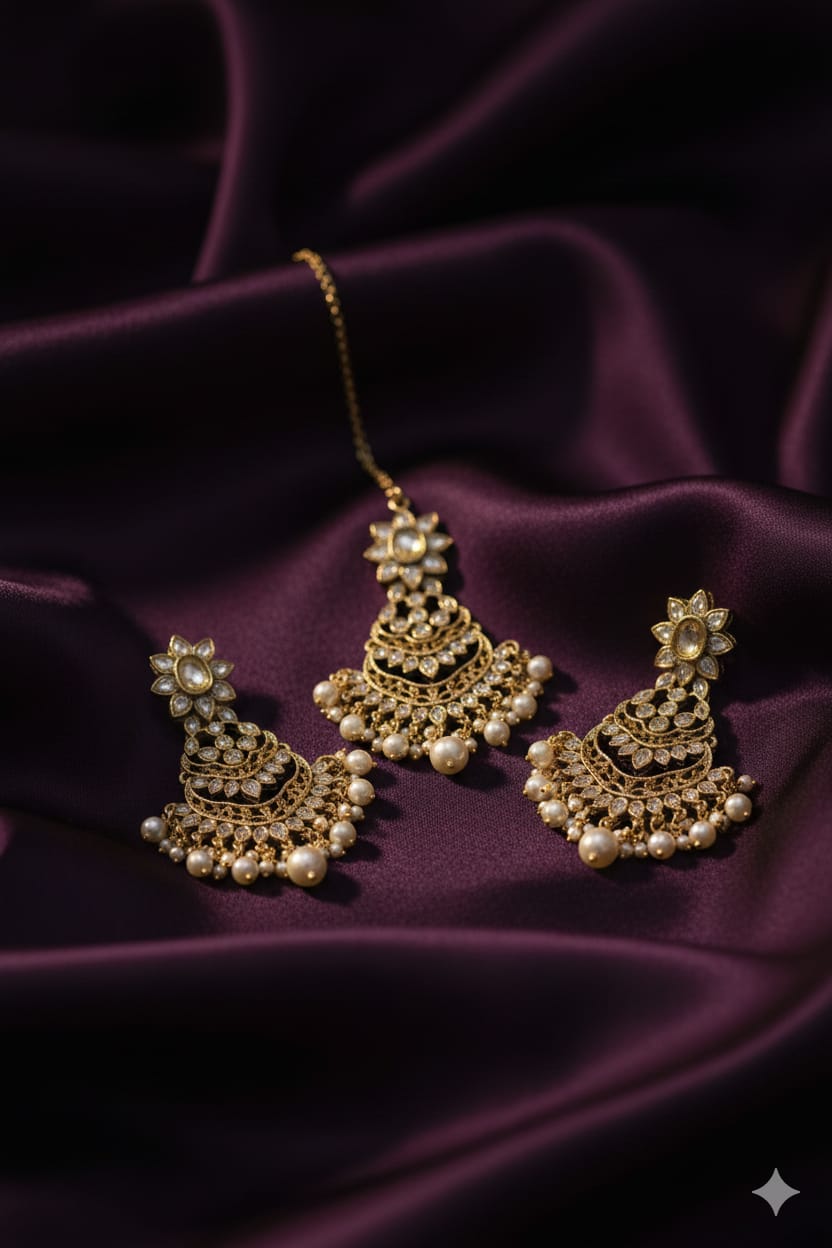 Elevate your ethnic look with this stunning Traditional Kundan Jewellery Set, a perfect blend of timeless elegance and intricate craftsmanship. Featuring a beautifully designed necklace, matching earrings, and maang tikka, this set showcases classic kundan stones set in detailed gold-tone metalwork. Ideal for weddings, festivals, or special occasions, it exudes royal charm and cultural richness. The artistry reflects traditional Indian heritage, making it a must-have for lovers of vintage-inspired jewellery. Comfortable to wear yet visually striking, this set complements both contemporary and traditional outfits. Make a graceful statement with jewellery that celebrates age-old elegance and sophisticated style.