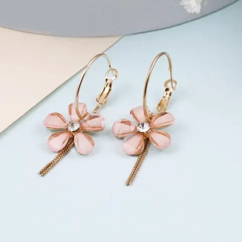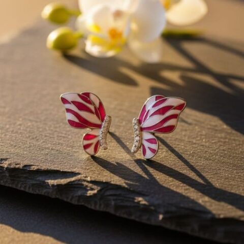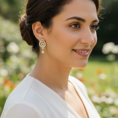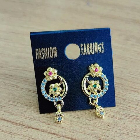 107fashionable gold-plated earrings with red and clear stone embellishments,