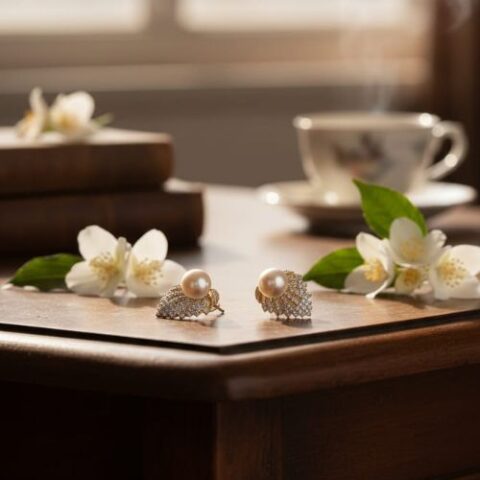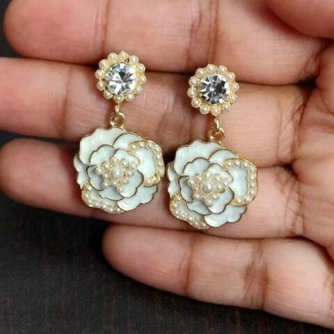 105Fashion Gold-Plated Pearl and Crystal Cluster Earrings or Elegant Pearl and Crystal Branch Dangle Earrings.