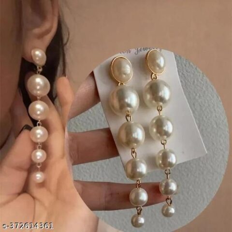 290 Long Pearl Drop Dangle Earrings.