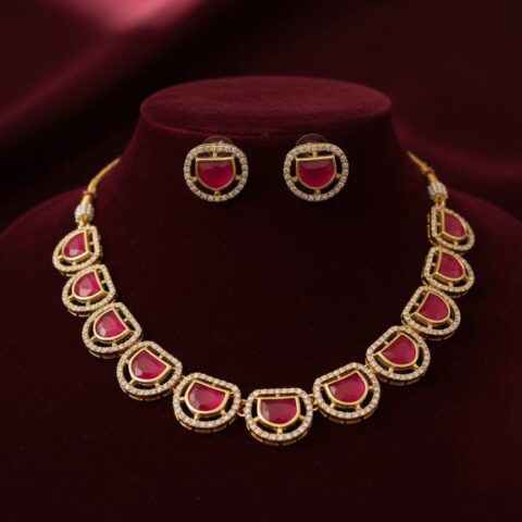 280 Kundan necklace with ruby-like red stones and matching earrings
