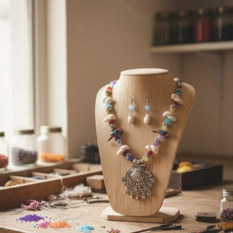 324Multicolor German Silver Shell & Thread Beads Necklace Set