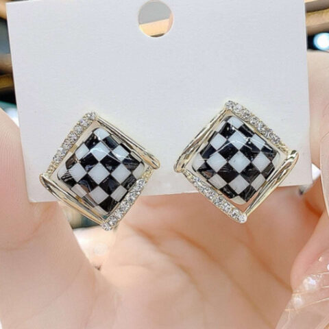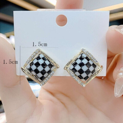 33Black and White Checkered Square Stud Earrings