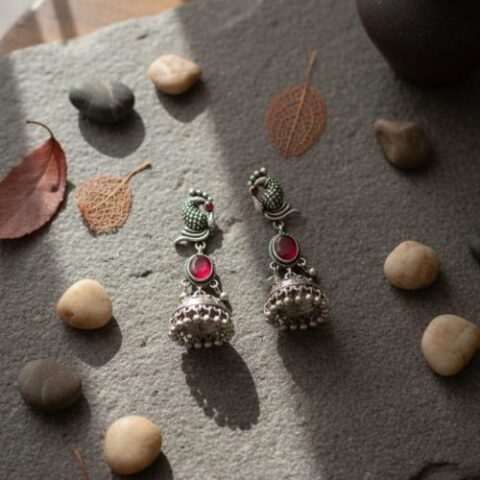402 Peacock Design Oxidised Jhumka earrings