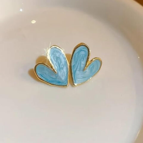 44Blue Enamel Heart Shaped Stud Earrings with Gold Plating