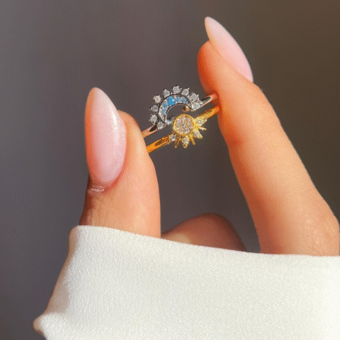 450 Sun and Moon Rings or Celestial Sun and Moon Rings.