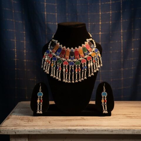 Mahavir Dye Gold Plated Meenakari Chain Pendant Set or a similar Peacock Minakari Pendant Set