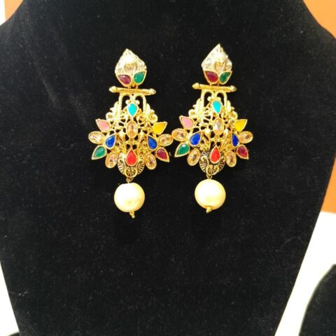 O1 Dual Peacock Designer Jadau Kundan Earrings with Pearls