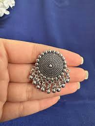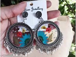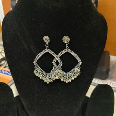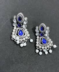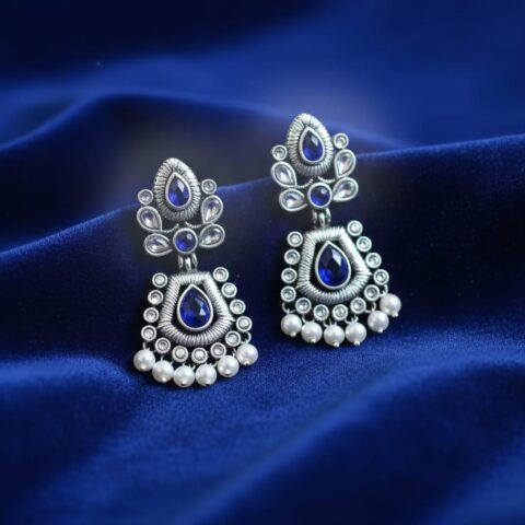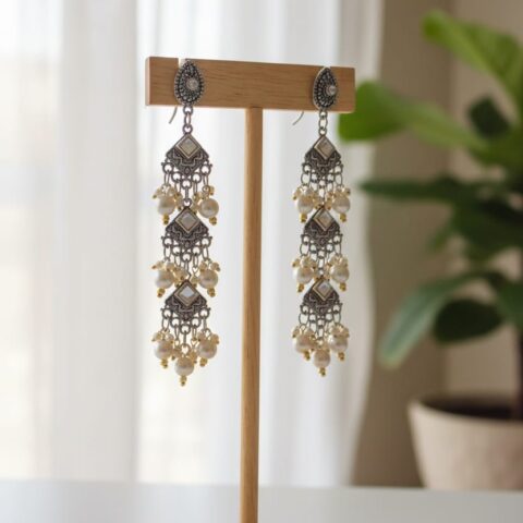 oxidized silver-plated fashion earrings with black stone and pearl drops