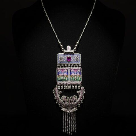 Oxidized Silver Necklace Set with Pendant and Matching Earrings