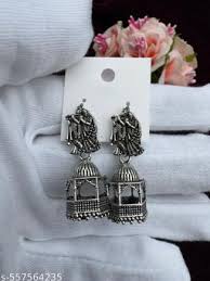 Oxidized Silver Radhe Krishna Jhumki Earrings