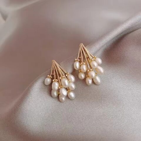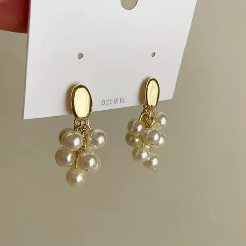 Pearl Safety Pin Dangle Earrings or Gold Toned Pin Shaped Pearl Drop Earrings.