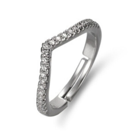 Silver Plated American Diamond Studded V Shape Contemporary Adjustable Finger Ring.