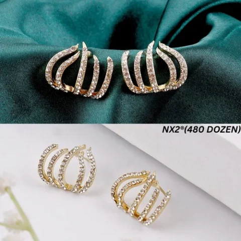 Vassaley Korean Gold Plated Shiny Triple Hoop Earrings