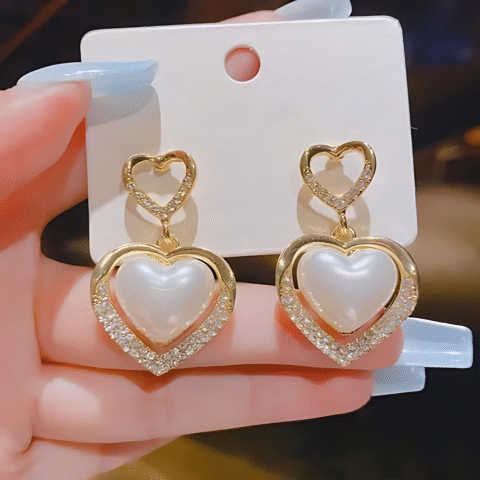 JJK 60 Gold-Plated Korean Marvelous Dual Hearts Pearl Drop Earrings
