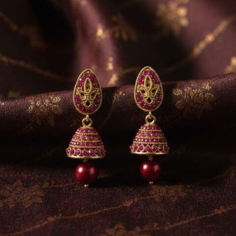 189Gold-Plated Traditional Indian Drop Earrings with Leaf Motif or Rajkot Style Gold-Plated Drop Earrings